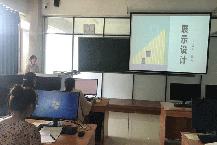 刘吾久老师在讲授课程内容以外,还简单回顾了自己入职以来的心路变化历程:从刚刚毕业到入职华宇,从学生到教师角色的转变等等,刘老师对所授的《展示设计》课程进行了重新系统梳理,对每个章节的要点、难点有了更清晰的掌握,将参与竞赛的过程上升为检查自身教学水平、改进教学方法的高度。刘老师讲课重难点突出,逻辑严密,节奏把控较好,道具略简单,板书需多加练习。