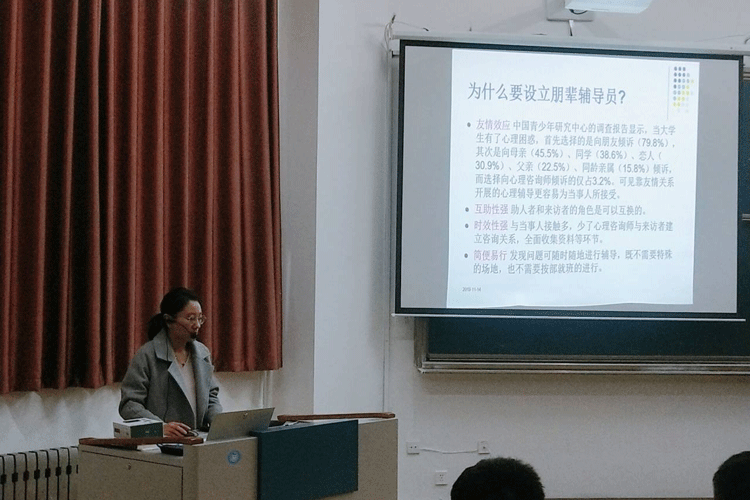 为进一步加强学院朋辈心理辅导员队伍建设,全面推进心理健康教育工作,2019年11月14日下午,beat365在线唯一官网院在6号楼104教室成功举办“朋辈心理辅导员培训”,主讲人为学院心理辅导老师张春红。参加此次培训的人员有2019级心理委员以及宿舍朋辈心理辅导员等200余人。