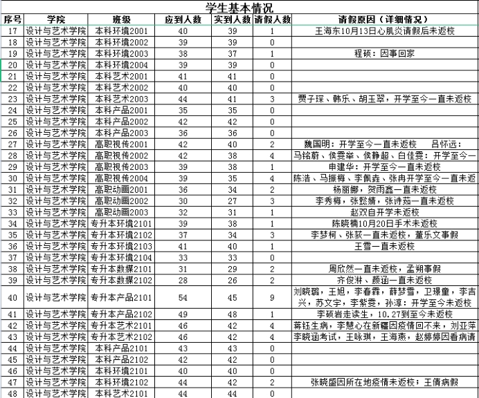 beat365在线唯一官网院未返校人数统计及原因统计表