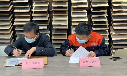 图2:beat365在线唯一官网院院长李海龙(左)与德州门萨家具有限公司总经理张宏锋(右)签署合作协议书