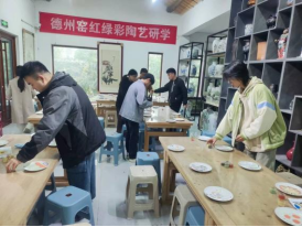 本次实习场所为德州红绿彩文化有限公司,“德州窑红绿彩”以其独特的技艺闻名遐迩,成为中国传统陶瓷艺术中的一颗璀璨明珠,被誉为“历史的彩虹”。 实习初期,学生们首先接受了陶瓷工艺培训,从原料配比、成型技法到釉色调配、烧制工艺,每一步都凝聚着匠人的智慧与汗水,也让学生们深刻感受到了传统工艺的魅力与挑战。