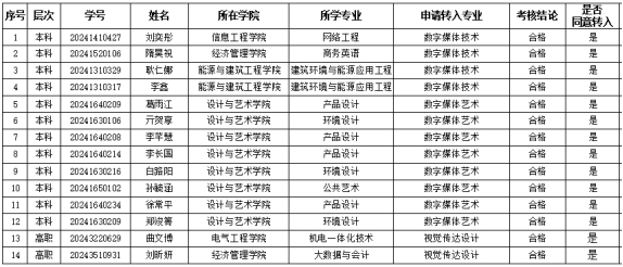 根据《山东华宇工学院关于做好学生转专业工作的通知》的相关要求与规定,经学生申请、学院审核、教务处复核、学院考核,拟接收转专业学生14名。现将名单予以公示,公示期为2025年5月20日—5月22日。