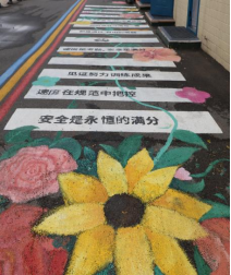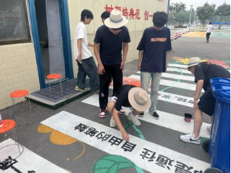 该社会实践项目以“艺术介入公共空间”为理念,打破高校与行业的壁垒,通过“艺术美育+交通安全”的融合实践,实现了学生创造力与驾校社会价值的双向激活。从场地测量到主题设计,完成墙面彩绘300㎡、地面涂鸦500㎡,覆盖驾校核心区域。墙绘以“驾驶与城市”为主题,地绘则融入交通标识与安全警示符号,打造兼具教学价值与视觉张力的沉浸式墙绘艺术。