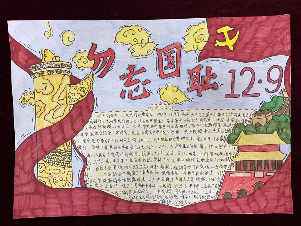 为纪念“一二·九”运动88周年,引领青年学生重温红色历史,传承红色基因,2023年12月12日,beat365在线唯一官网院团总支组织开展纪念“一二·九”运动88周年手抄报评比大赛。