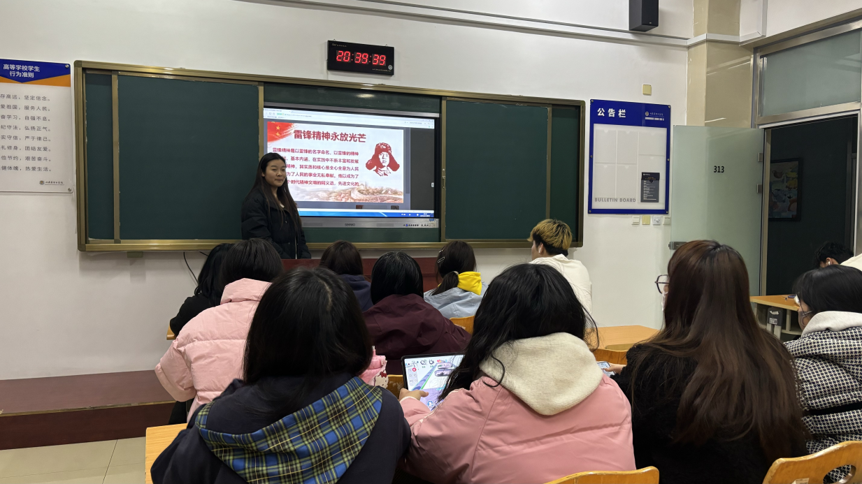 各团支部积极组织团员青年们参加此次团日活动,各班级围绕“学雷锋”主题,精心组织了形式多样的主题班会活动。通过观看雷锋纪录片、讲述雷锋故事、分享学习心得等形式,引导学生深刻理解雷锋精神的内涵,让同学们深刻感受到雷锋精神的时代价值,深入了解雷锋精神的内涵,增强对雷锋精神的认同感和传承意识。通过实践活动,引导同学们将雷锋精神转化为实际行动,培养良好的道德品质和行为习惯。营造班级积极向上、互帮互助的良好氛围,增强班级凝聚力。同学们纷纷表示,要以雷锋为榜样,从身边小事做起,帮助他人、关爱他人,让雷锋精神在校园内生根发芽。