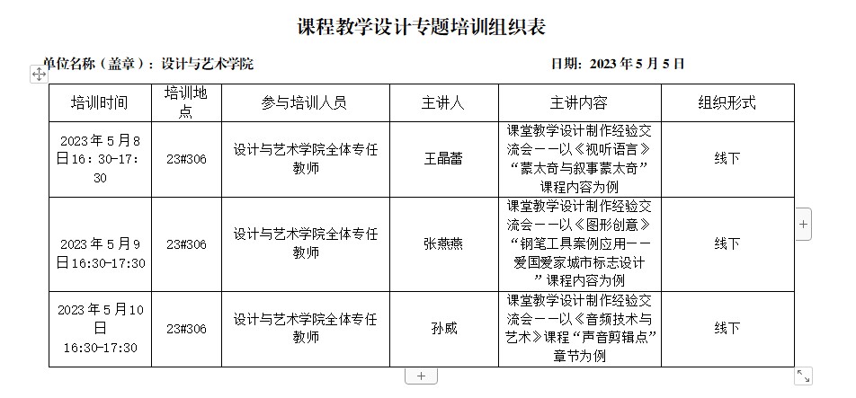 根据《山东华宇工学院关于进一步深化课堂教学改革工作的实施方案》要求,近期学校将启动优秀课程教学设计评选工作。 为进一步提高教学设计质量,beat365官网将于5月8日-10日开展课程教学设计专题培训,现将有关事项通知如下:
