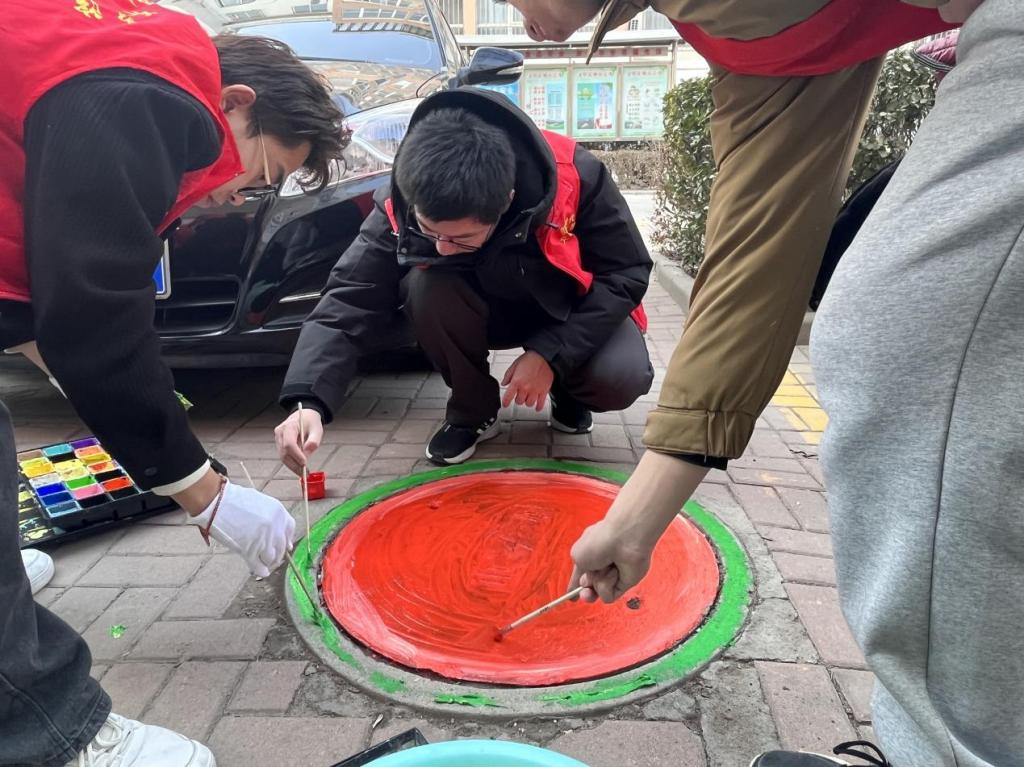 活动现场,活动负责人对学生志愿者们进行了培训,讲述了主要工作内容,明确了分工,强调了要求,志愿者们积极主动,配合默契,社区工作人员热情周到,提供支持。本次社会实践活动小组由产品设计、环境设计专业和公共艺术专业的部分学生组成,主要为社区的井盖、路标等基础设施开展美化活动,为社区环境增添靓丽的颜色,一个普通的井盖逐渐变得五彩斑斓,充满艺术气息,变得生动有趣,仿佛在诉说着一个个美丽的故事,让社区居民在繁忙的生活中也体会到艺术的魅力,发现生活的美好。