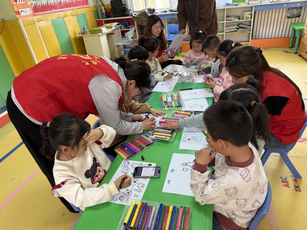 活动现场,大学生志愿者们化身为“艺术导师”,根据幼儿园小朋友的年龄特点,精心设计了趣味涂鸦、色彩认知等互动环节。他们用生动有趣的语言引导孩子们观察生活、发挥想象,从水彩晕染到线条勾勒,每一项活动都激发了孩子们对美的探索与表达。在志愿者的耐心指导下,一幅幅充满童趣与创意的作品跃然纸上,孩子们的脸上洋溢着自信与喜悦。