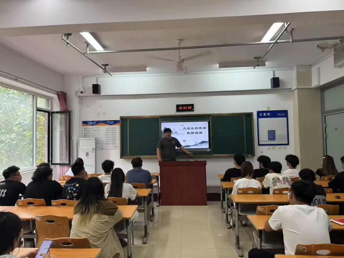 为深化中华优秀传统文化教育,提升学生人文素养与语言表达能力,为学生量身打造的《大学生经典诗歌朗诵课》于近日正式开课。本次课程以“以诗为舟溯文脉 声动校园启新篇”主题,通过“经典研读+声音演绎+文化实践”的多元模式,为全校学生搭建了一座联通古今的诗歌艺术桥梁。