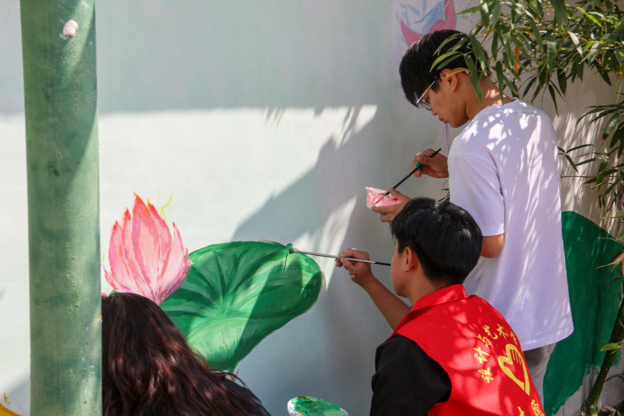 活动现场,beat365在线唯一官网院学子充分发挥专业优势,将课堂知识与实践相结合,主要从环境美化等方面开展墙绘活动。从确定墙绘主题、尺幅到反复讨论修改构图、调整细节,再到墙体正式构图上色,诸多流程不仅是对专业技能的检阅,也是对体能意志的考验。他们挥笔如刀,他们心灵手巧,奇思妙想在他们脑中涌现,五彩斑斓的图案从他们笔尖诞生。精彩丰富的墙绘内容引得路人驻足观赏。