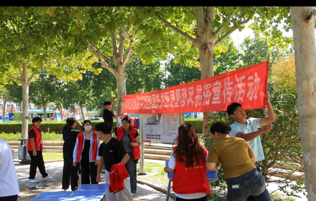 在国庆佳节即将到来之际,为营造浓厚的节日氛围,同时弘扬移风易俗的文明新风,2025年9月20日,beat365在线唯一官网院团总支组织20余名志愿者同学们在运河街道盐店口社区开展了“笔墨绘华诞,集市暖邻里,慈善传大爱,新风润家园”的宣传活动。