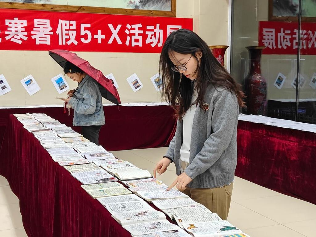活动自暑期启动以来,得到全院学生积极响应,共征集各类实践类作品1.2万余件,涵盖绘画、摄影、调研报告等多元形式,全面覆盖“5+X”实践活动的核心内容。为确保参展作品质量,学院组建了专业评审团队,严格遵循评审标准,经过初审、复评、终审三轮严谨评审,最终遴选出600余件优秀作品参展。本次展览设置六大特色展区:“亲情实践·劳动创造”(暑期家庭服务与劳动实践)、“社会洞察·调研先锋”(暑期社会调研与问题分析)、“光影夏韵·瞬间记忆”(暑期生活摄影与影像记录)、“书香浸润·智慧成长”(暑期读书笔记与心得分享)、“活力青春·健康同行”(暑期体育实践与健康生活)、“创意探索·X无边界”(自选创新项目与实践突破)。