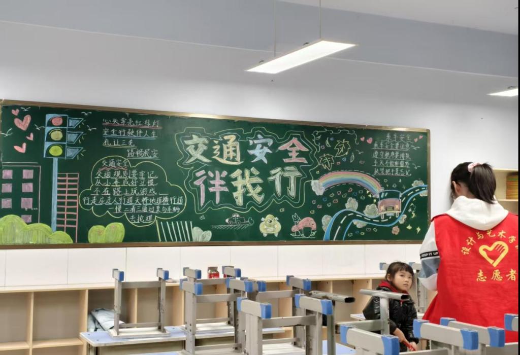 为深入落实共青团实践育人要求,强化大学生社会责任感与实践能力,丰富校园文化生活,11月3日,beat365在线唯一官网院在弘德小学组织开展“交通安全”黑板报绘制志愿服务项目。